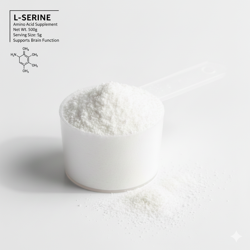 L serin se upotrebljava kao aminokiselina koja ima važnu ulogu u radu nervnog sistema i metabolizmu. Učestvuje u sintezi proteina, fosfolipida i nekih neurotransmitera, zbog čega je bitan za normalno funkcionisanje mozga i nerava. L serin doprinosi održavanju strukture ćelijskih membrana i učestvuje u procesu stvaranja energije. Također ima ulogu u sintezi drugih aminokiselina i spojeva važnih za imuni sistem. Često se spominje u kontekstu podrške kognitivnim funkcijama, koncentraciji i opštem zdravlju nervnog tkiva.