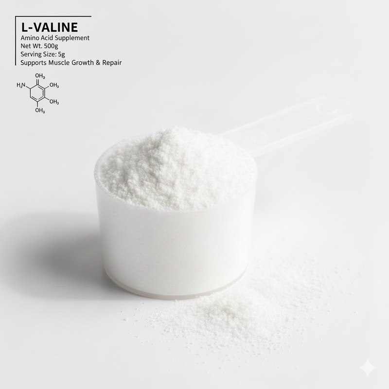 L valin se koristi kao esencijalna aminokiselina koja je važna za rast i obnovu mišićnog tkiva. Učestvuje u proizvodnji energije u mišićima i pomaže u smanjenju umora tokom fizičke aktivnosti. L valin ima ulogu u održavanju ravnoteže azota u organizmu i doprinosi normalnom funkcionisanju nervnog sistema. Posebno je značajan za oporavak nakon fizičkog napora i za očuvanje mišićne mase.