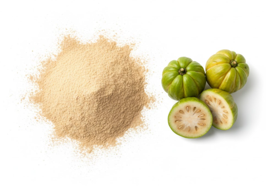 Kambodžanska garcinija je egzotično voće čija je kora najbogatiji prirodni izvor specifičnih voćnih kiselina. Naš suhi ekstrakt dobijen je iz perikarpa (kore) ploda i standardizovan je na visok procenat hidroksicitrične kiseline (HCA), koja je primarni aktivni spoj odgovoran za njen specifičan uticaj na metabolizam lipida.