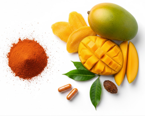 Mango nije samo ukusno tropsko voće, već i moćan izvor bioaktivnih spojeva. Naš suhi ekstrakt se dobija iz ploda ili lista (zavisno od namjene) i standardizovan je na mangiferin, prirodni polifenol sa snažnim farmakološkim potencijalom. Ova sirovina je ključna za formulacije koje ciljaju energiju, metabolizam i zaštitu ćelija.