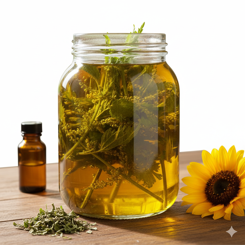 Otkrijte prirodnu snagu koprivnjače, infuzirane u organskom suncokretovom ulju, svestranog ulja poznatog po svojim umirujućim i smirujućim svojstvima.