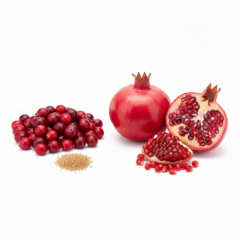Ulje brusnice je bogato vitaminima C i E, koji štite kožu od slobodnih radikala i potiču proizvodnju kolagena. S druge strane, ulje nara sadrži elaginsku kiselinu, snažan antioksidans koji pomaže u smanjenju upala i poboljšanju tona kože.